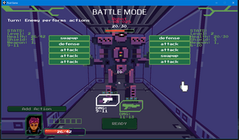 When you approach an enemy and interact with it, a turn-based battle begins: you choose a sequence of actions, and the enemy chooses theirs. Next comes the “comparison” stage of your actions.