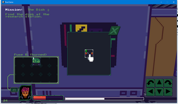 You move around the cells and can pick up items lying around and interact with boxes or enemies.
